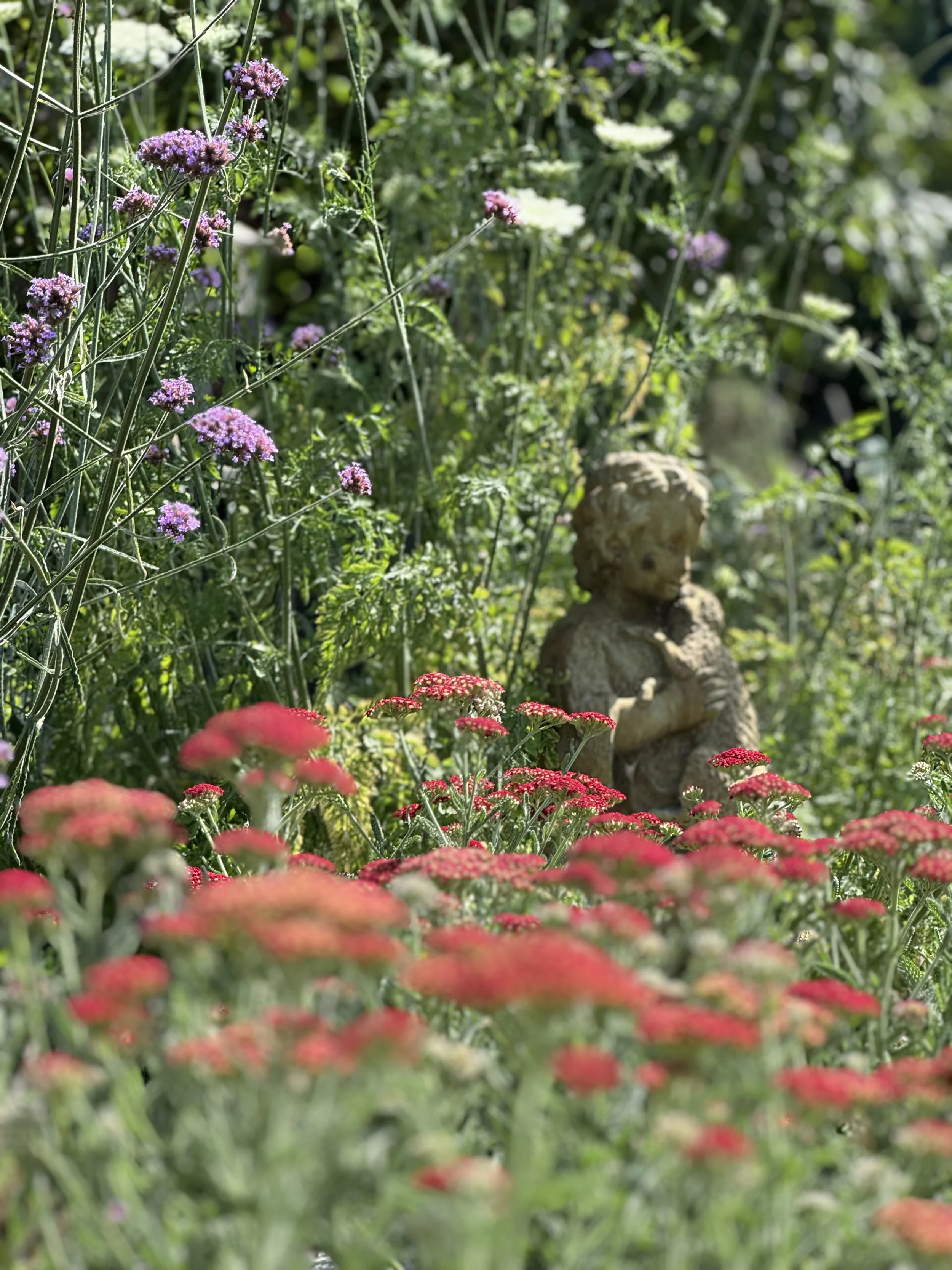 As the days lengthen the flower field color palette darkens. The pinks become reds and the pale yellows become deeper.
