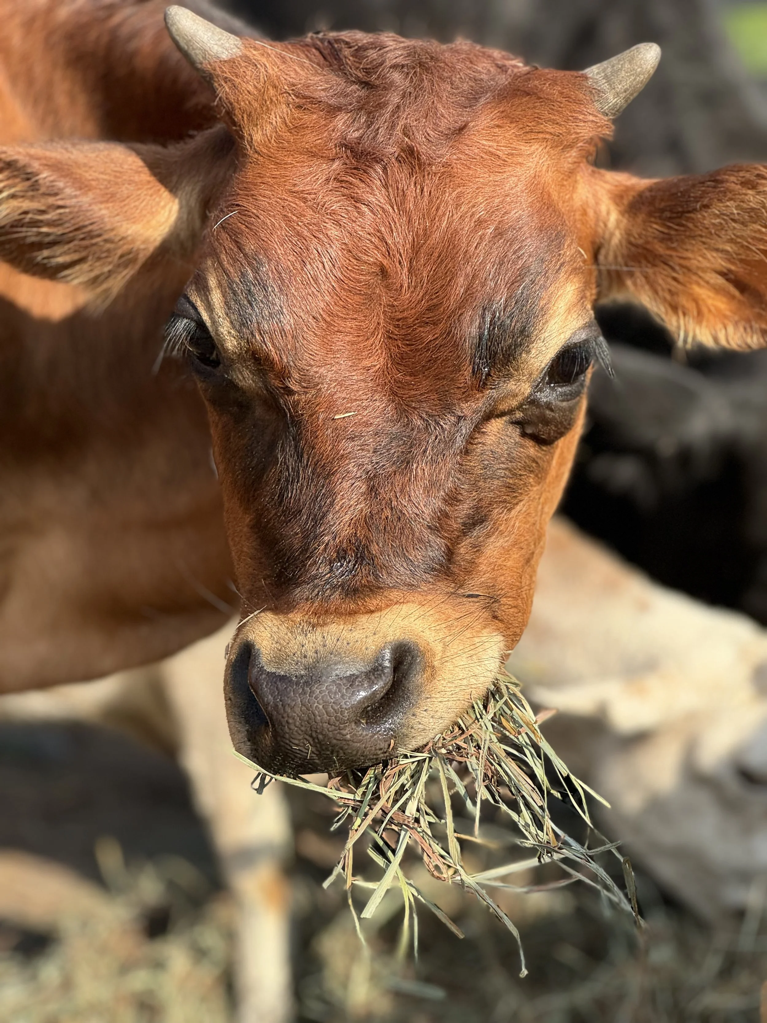 Lizzie, a black Angus, and Ozzie, a little Jersey steer, are the first of our cow collection.