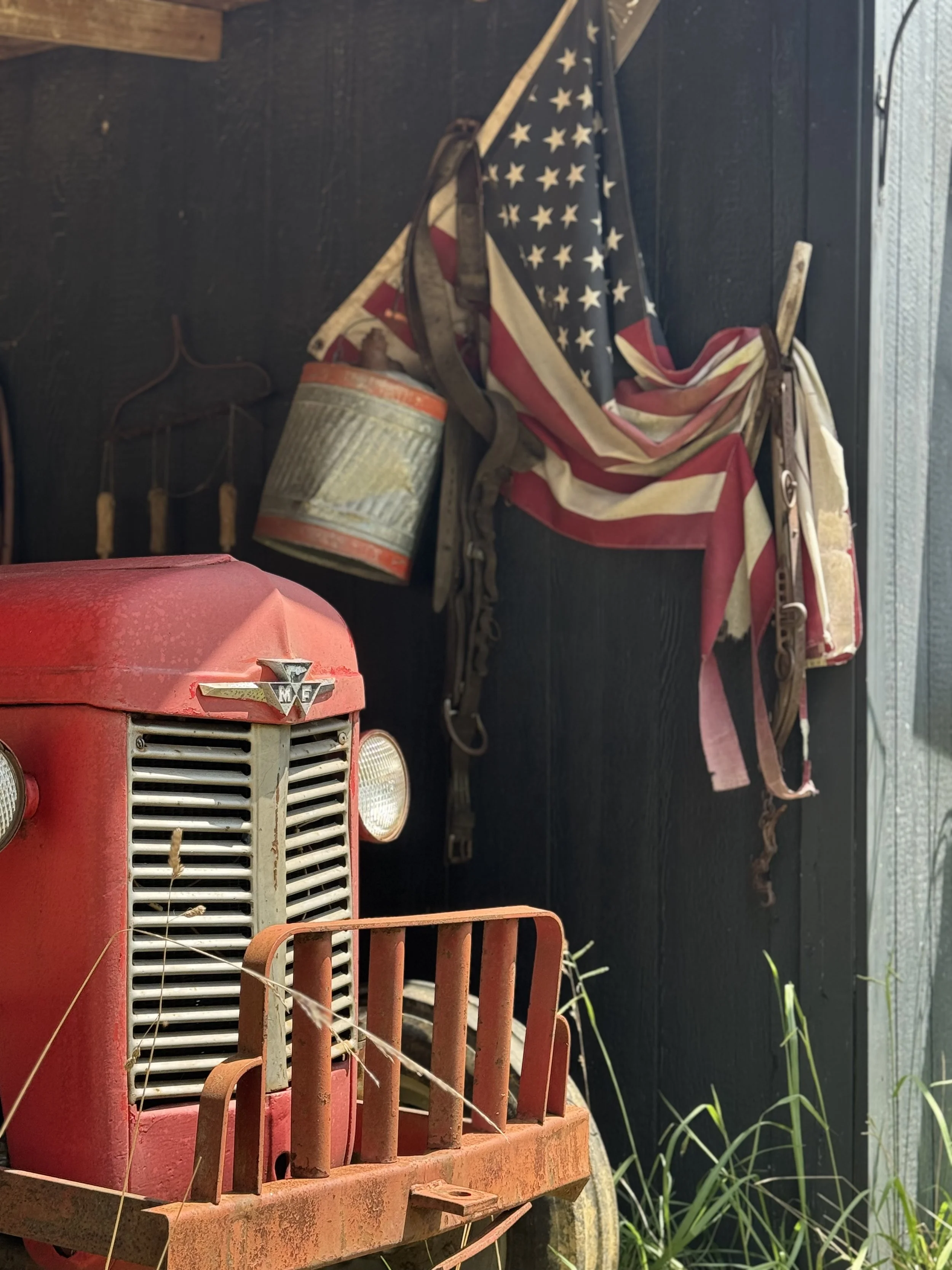Sometimes I go in search of a specific photo for a specific purpose but then I get distracted by another photo. Today it was this one. Dad was so excited to get started on clearing the land on the property, that he purchased this little MF35 before we had even closed! And the summer was so very hot that we quickly built this little shed in the first few days after we closed. It is too close to the road but it was too hot for us top take time to clear trees. We need a place to store things and house a small fridge for cold drinks! This is still one of our favorite vignettes on the farm!